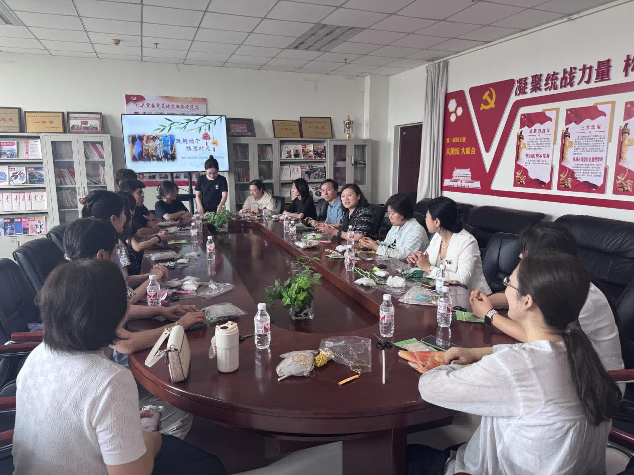 5月28日下午,开云官网党外人士与敏行一站式社区学生于 12楼统战之家会议室开展“玩趣端午 绣意时光”共话传统制作香囊艾草锤的活动,在实践体验中实现文化传承与情感交融。