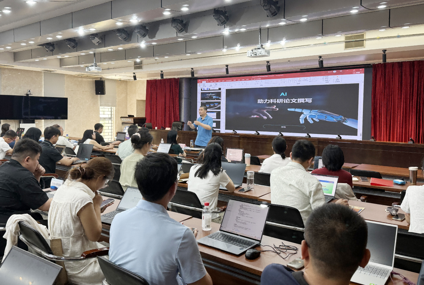 上午场活动王珏教授以《AI赋能科研论文写作》为主题开展培训。活动伊始,王珏教授发布“AI使用调查问卷”了解参会青年博士使用AI过程中遇到的问题。随后介绍了AI技术的发展现状和大模型的底层工作原理,结合高校教师科研论文撰写全流程从论文选题、文献资料下载、文献综述撰写、数据分析、论文内容润色降重等方面运用现有的大模型工具逐一进行实操演练。