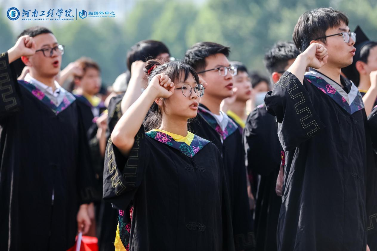 在毕业宣誓环节,2024届全体毕业生用高亢嘹亮的声音立下铮铮誓言,展现了新时代青年不负韶华、不负时代、不负人民的责任担当。