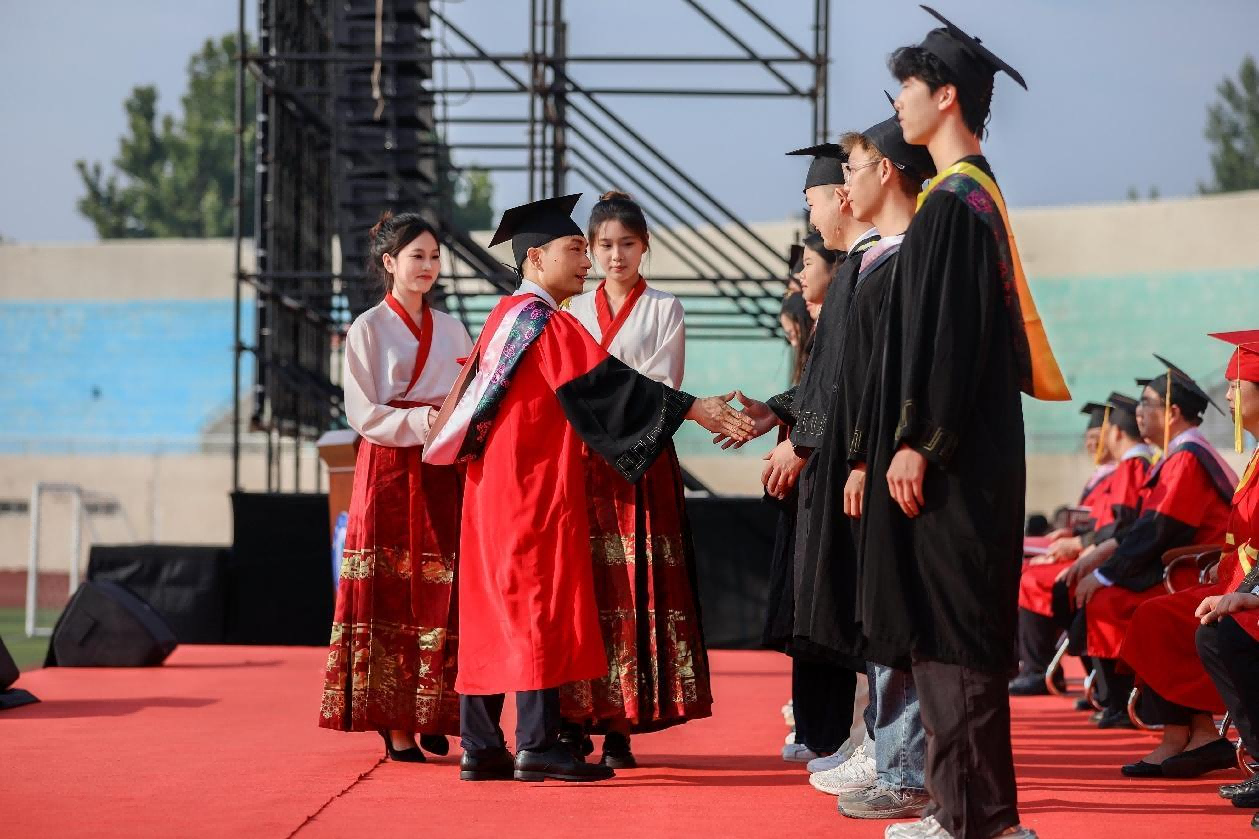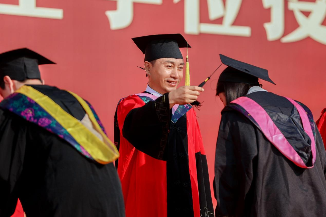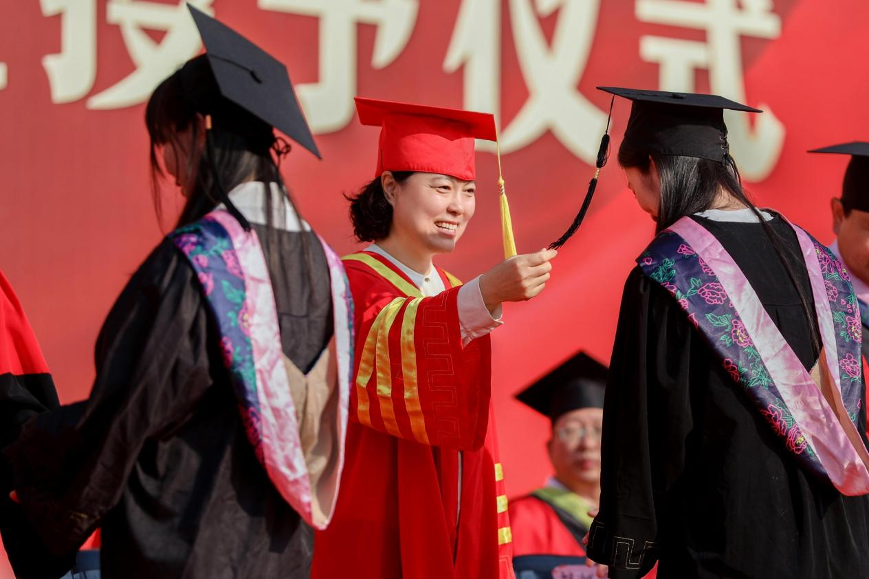 全体校领导为2024届毕业生代表拨穗正冠、颁发毕业证书,并合影留念。